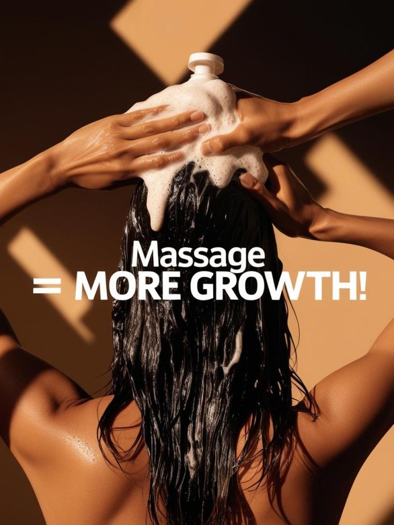 Massage your scalp for 2-3 minutes while shampooing to boost circulation and stimulate hair follicles.