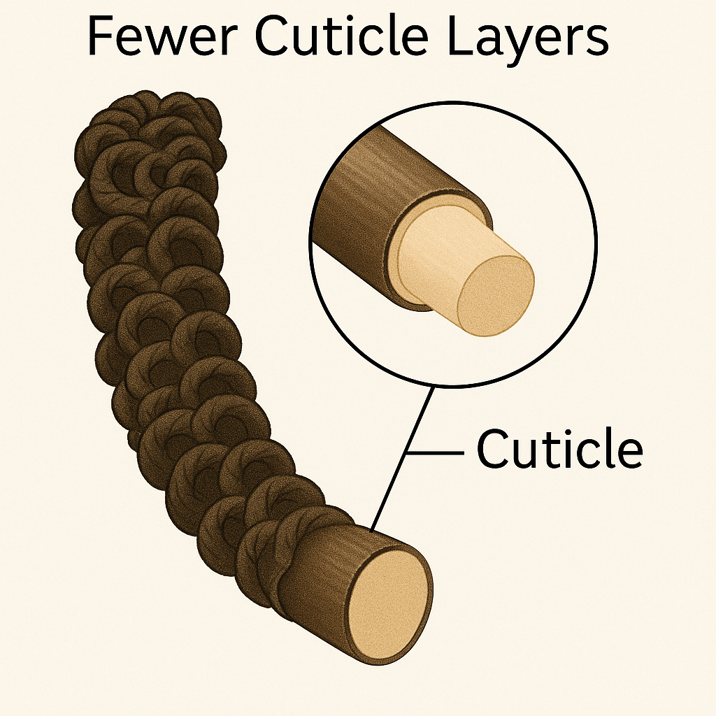 Afro hair has fewer protective cuticle layers, which makes it more prone to damage, breakage, and moisture loss. That’s why hydration, sealing, and protective styling are essential.