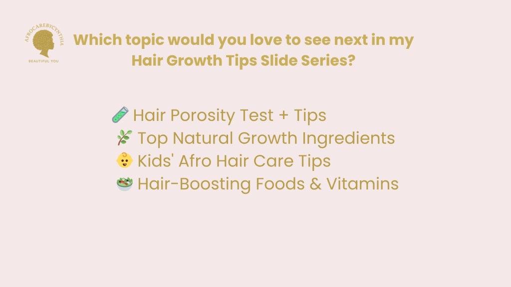 Which topic would you love to see next in my Hair Growth Tips Slide Series?