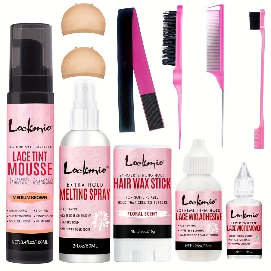 11pcs Hair Styling Kit includes Hair Wax Stick, Lace Mousse, Lace Glue, and Glue Spray. It also has Glue Remover, a Headband, Three Comb Brushes, and a Lace Wig Cap. Manage your hairstyle with Hair Edge Control, Wig Styling Kit, and Wig Fixing. 🛒 Shop on Temu 🎉 Coupon price[12,68€] ⚠️ The discount may vary, please refer to the page display.