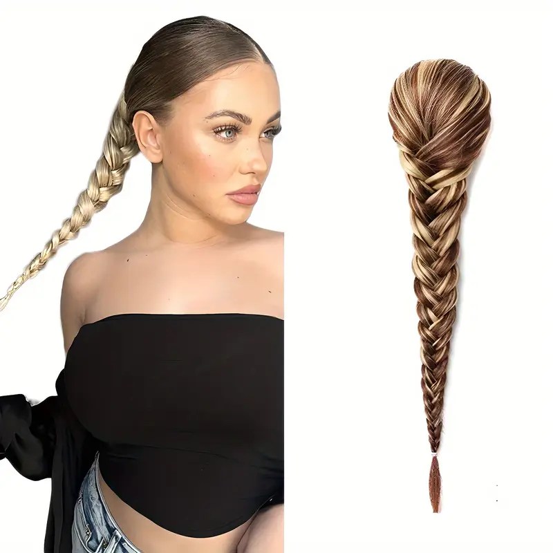 1pc Elegant Curly Wave Tail Ponytail Extension. It is a 16-inch Fishbone Braided Clip-in Hair for Women. This synthetic wavy ponytail comes with a drawstring. It is suitable for Unisex-Adults and perfect for Fashion Parties, Christmas, and New Year Gifts. 🛒 Shop on Temu 🎉 Coupon price[3,26€] ⚠️ The discount may vary, please refer to the page display.